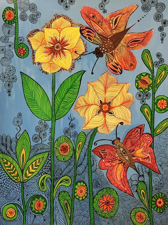 Red_And_Orange_Longhorn_In_Bluebonnets